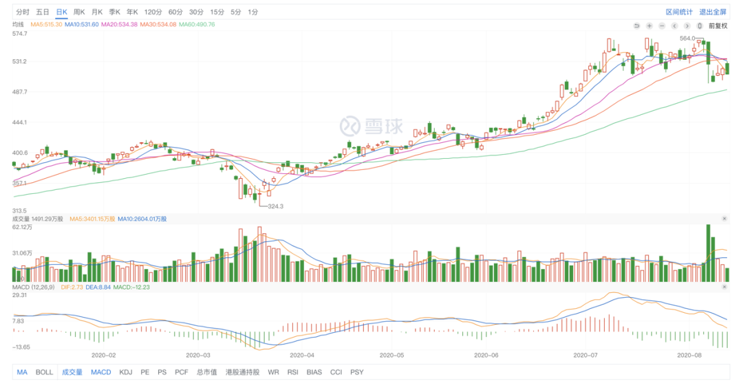 騰訊股價(jià)走勢(shì)(圖源雪球)
